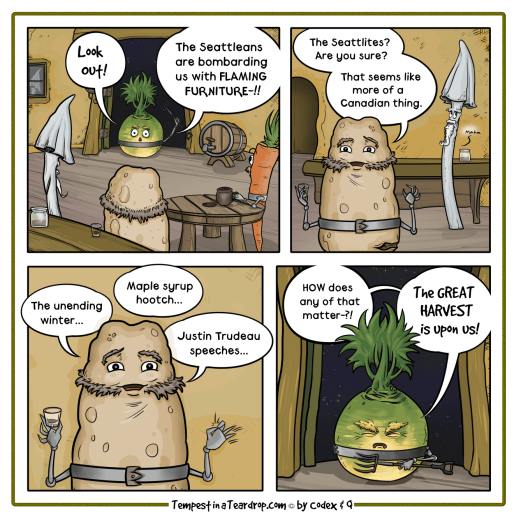 Big torch outside, and the turnip has a pitchfork in hand. To misquote Inspector Kemp (Young Frankenstein): “A carrot iz an oogly thingk. Unt, it is high time ve had vone!!”