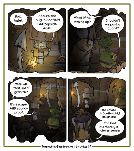 No, the comic is correct. The strata are in Scofield, like the bible.