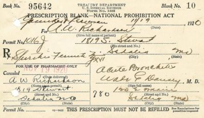 Doctors could also prescribe whiskey and other distilled spirits as treatment for ailments. It was limited to one pint every 10 days. No physical examination was needed, as long as the doctor based his prescription “upon the best information attainable.” In 1917, the American Medical Association issued a declaration that said alcohol had no scientific value as a tonic or stimulant for healing. The Science, negating a tradition going back thousands of years, was settled.