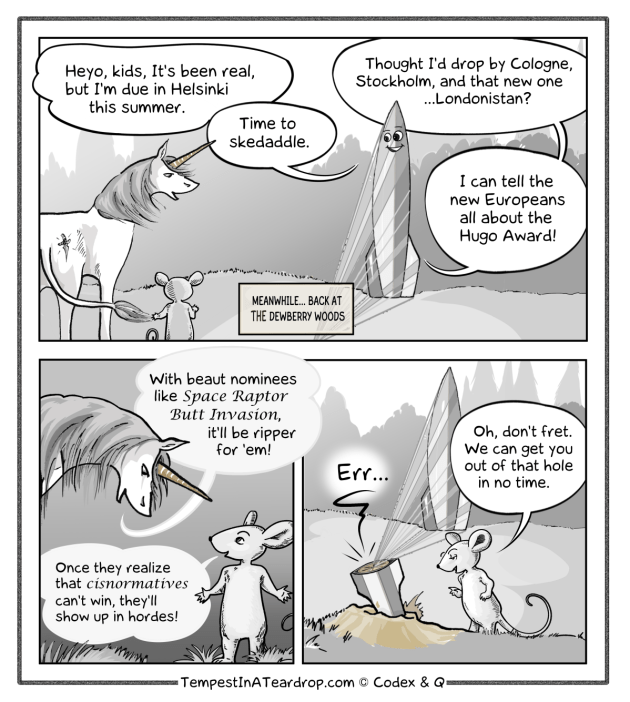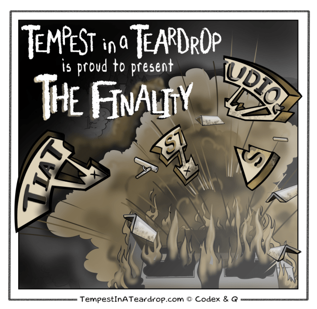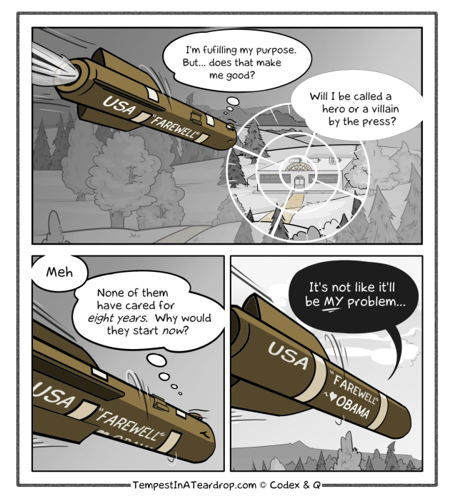 Then she quickly cobbled this together. We hope it is clear that Tempest in a Teardrop Studio was blown up by a missile. And that the resulting fire has a mysterious, destructive, blue tinge to it.