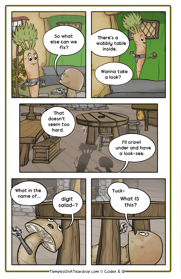 Rory is referencing the table. That wasn’t very clear in the comic.