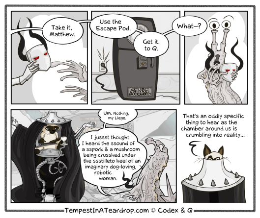 We at Tempest in a Teardrop are eagerly watching as the legions of Vile Faceless Minions, Ilk, Dread Ilk, Evil Legion of Lawyer Ilk, Camp Followers, and Well-Wishers are assembling before the mighty evil throne of the Evil Lord of Evil himself. We imagine he’ll pop in, fully armored, eyes hungrily glowing for more skulls. Good luck, men, and remember: It’s chew, then swallow.