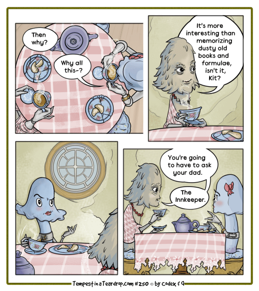 Codex here. The main super-sekrit reason I needed a break (which got broken by missing computers and busted glasses) wasn’t just to build the south side of Ione’s study or endless crockery assets, complete with artistic cracks. Nope. there was another project involving this delightful creature, a library, and a really good book, so do save some Christmas budget for your tween- and teen-age readers.