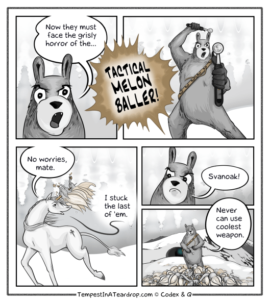 Codex’s note. On the unlikely chance you missed the full glory of the tactical melon baller, read this.