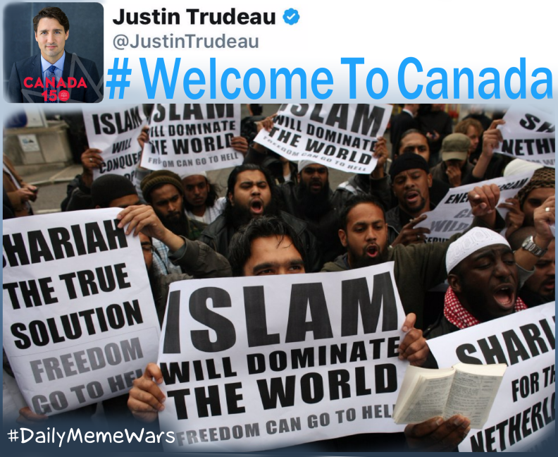 Unless you’re a Christian, Jewish, atheist, or apostates fleeing Muslim persecution, of course. And I rather suspect that Mr. Trudeau would not welcome any of the United States’ tiny band of wanna-be Baby Hitlers who are fleeing persecution for their despised beliefs.